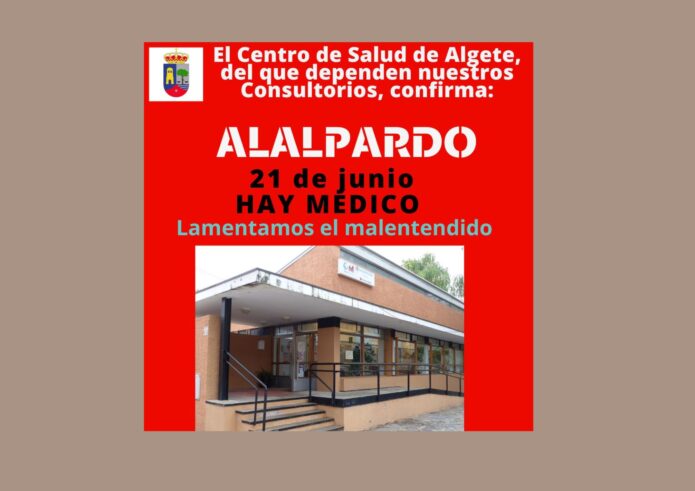 El 21 de junio sí hay médico en el Consultorio de Alalpardo