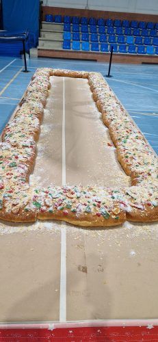 No hay día de Reyes sin Roscón. Y en el municipio no hubo uno sino dos gigantescos roscones. El de Alalpardo lo donó Unity Bar Cafetería. Un roscón de 4 metros y medio de largo y 2 metros y medio de ancho. 650 raciones elaborado por Vircar y degustado por los vecinos en el Pabellón cubierto una vez que los Reyes entregaron los regalos a los niños.