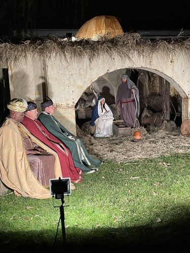 Un año más se recreó la aldea de Belén, bien iluminada, con el attrezo adecuado y con figurantes como si fuera de cera.