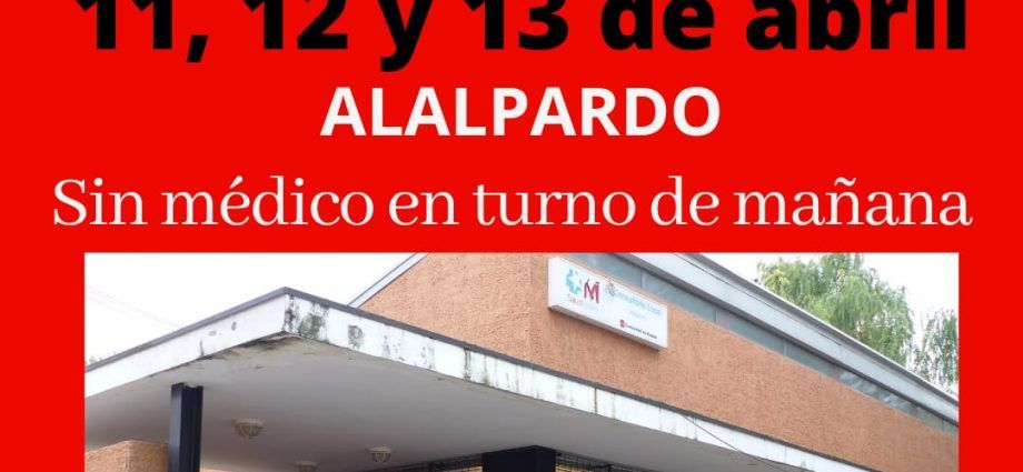 El Centro de Salud de Algete, del que dependen nuestros Consultorios, confirma que el 11, 12 y 13 de abril no habrá médico en Alalpardo en turno de mañana por falta de sanitarios.