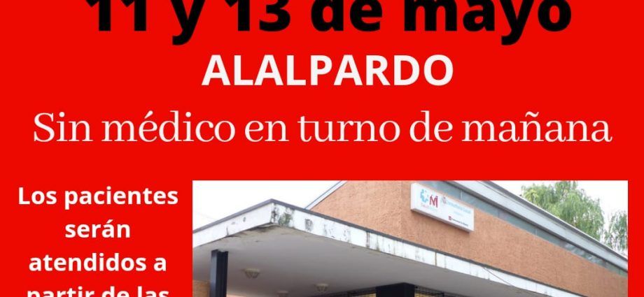 El Centro de Salud de Algete, del que dependen nuestros Consultorios, confirma que el 11 y 13 de mayo no habrá médico en Alalpardo en turno de mañana debido a un impresvisto.