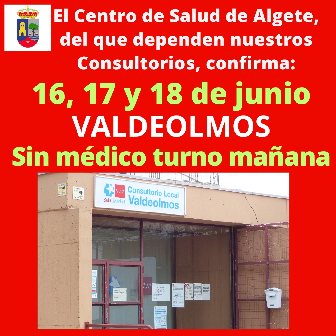 16, 17 y 18 de junio: Sin médico en turno de mañana en Valdeolmos » Sin médico en Valdeolmos