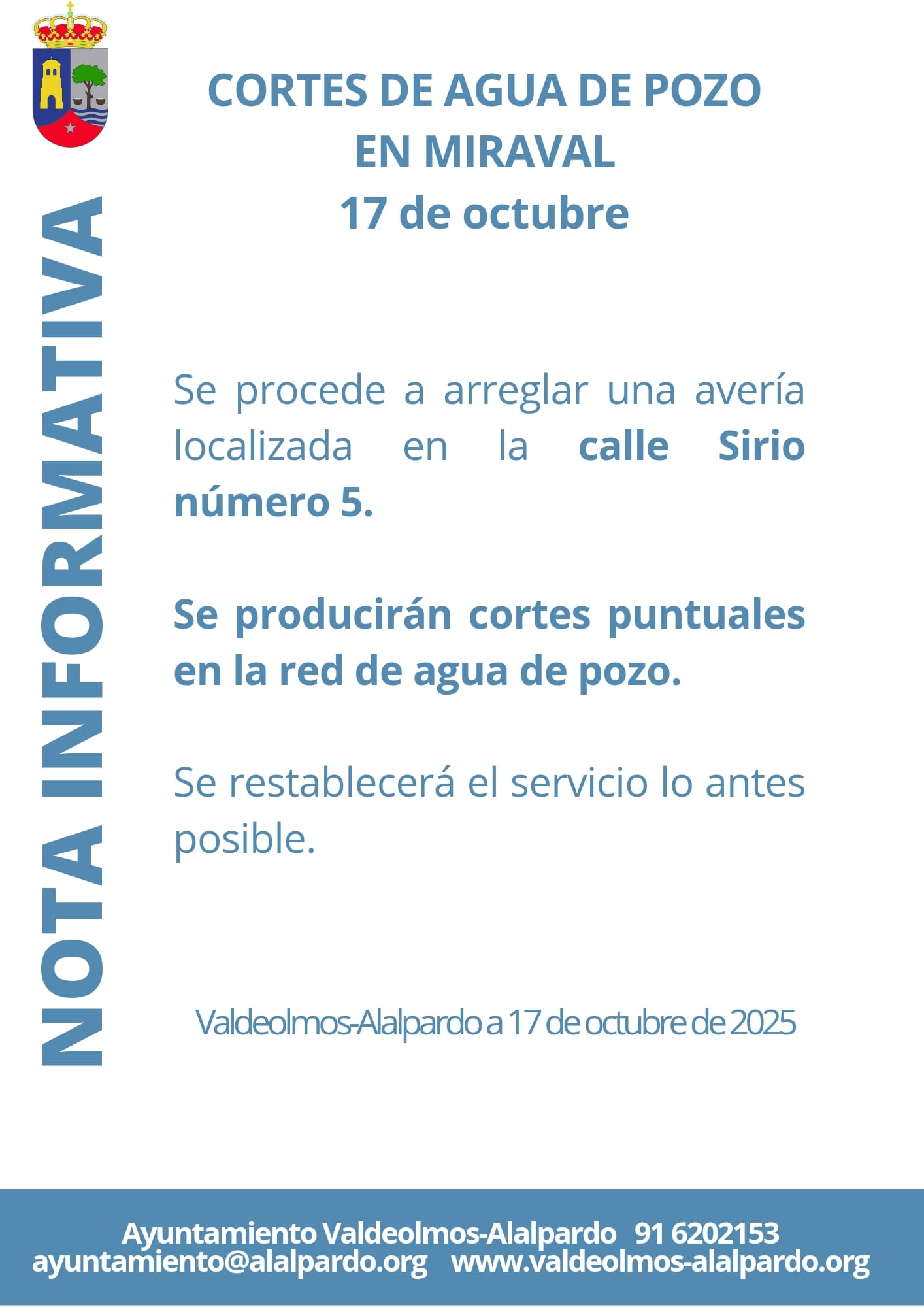 17 de octubre: Cortes de agua de pozo en Miraval