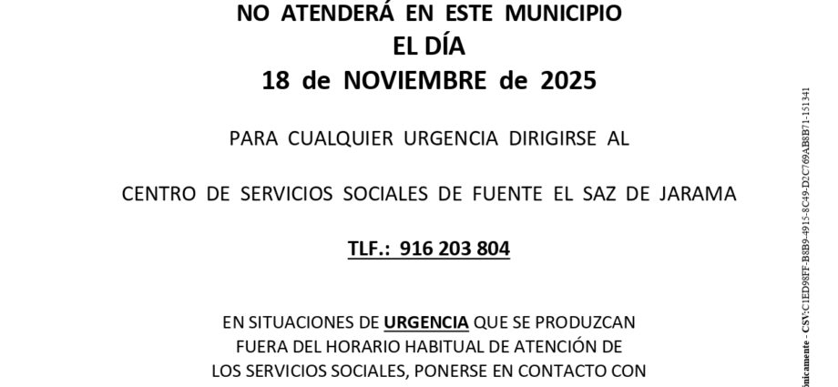 La Trabajadora Social no atiende en nuestro municipio el 18 de noviembre