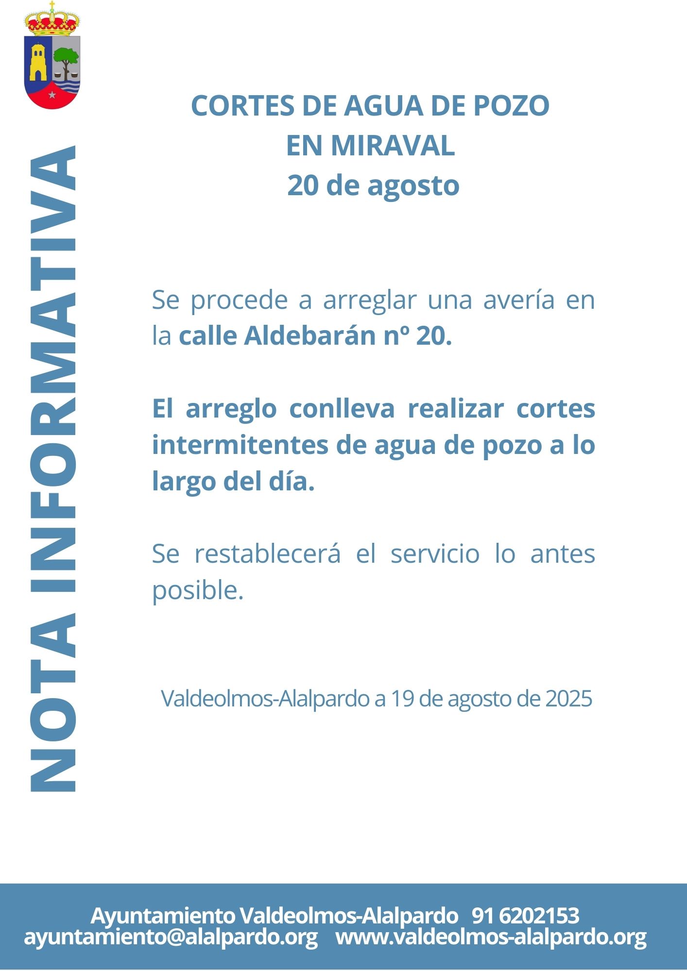 20 de agosto: Cortes de agua de pozo en Miraval »