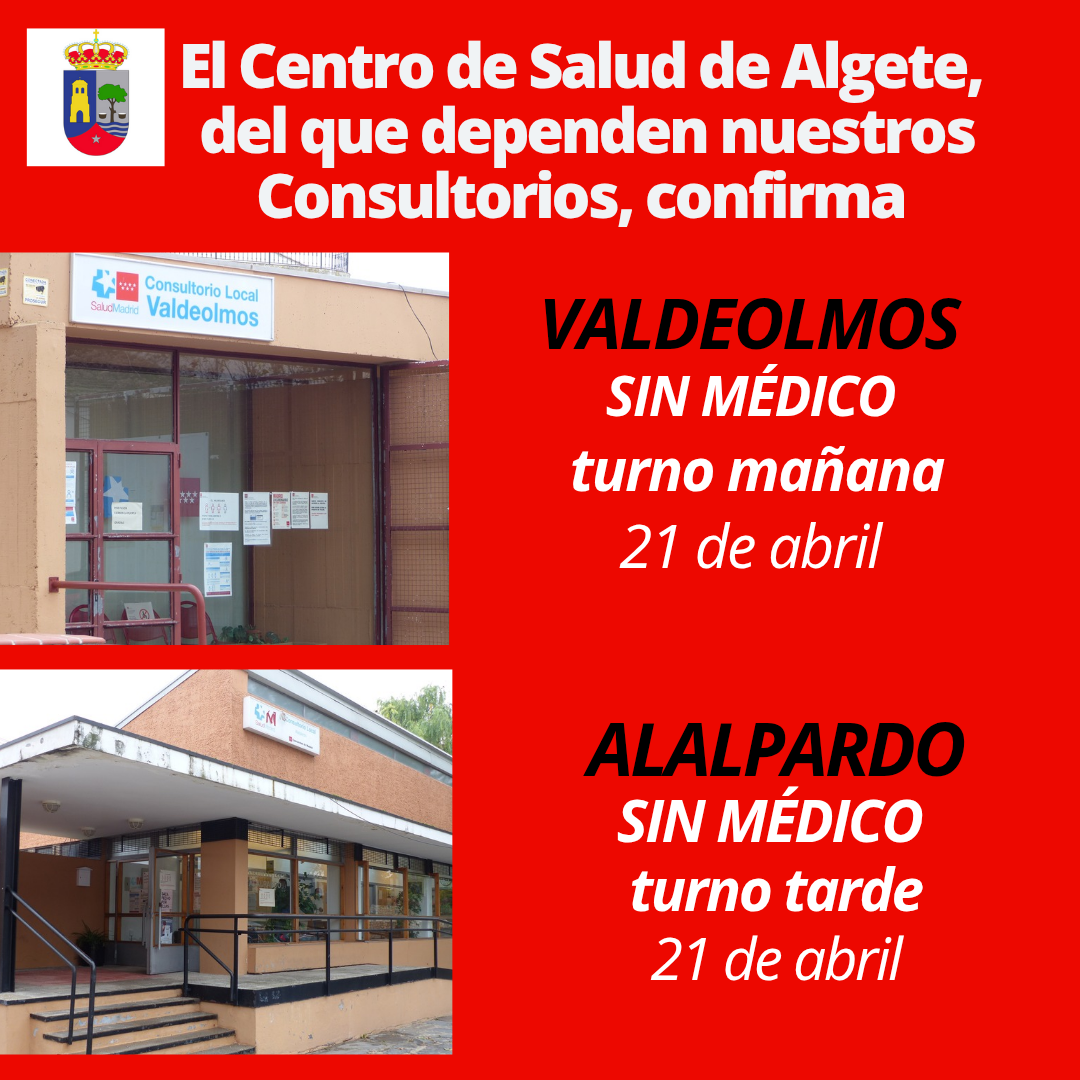 21 de abril: Sin médico en los Consultorios de Valdeolmos y Alalpardo » 22 de abril sin médico