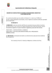 Decreto de convocatoria de Pleno Extraordinario el 26 de enero a las 9 horas