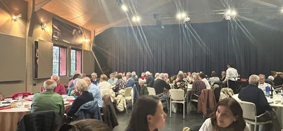 Se juntaron 98 comensales para disfrutar de una agradable comida transformando el Teatro de la Casa de la Cultura de Alalpardo en restaurante.