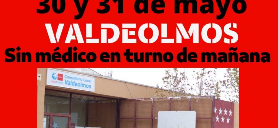 El Centro de Salud de Algete, del que dependen nuestros Consultorios, confirma que el 30 y 31 de mayo no habrá médico en Valdeolmos en turno de mañana.