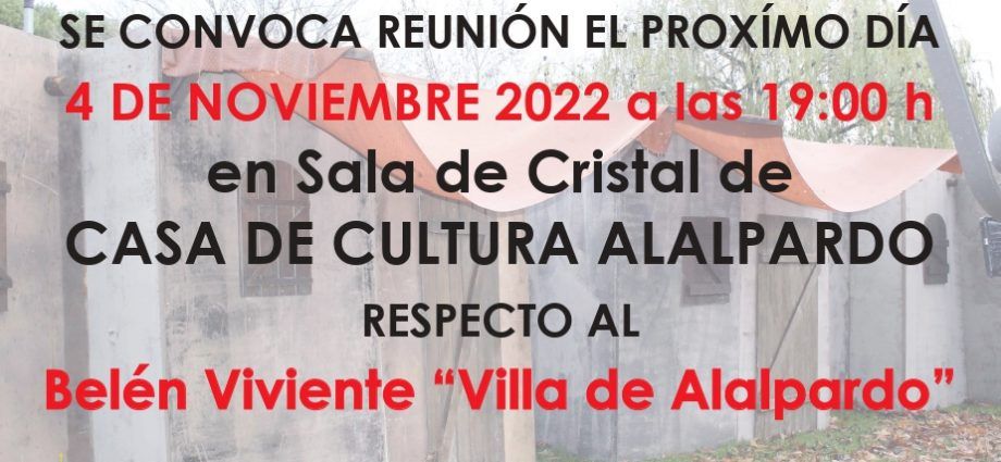 Se convoca reunión para el Belén Viviente ‘Villa de Alalpardo’ el viernes 4 de noviembre a las 19:00 horas en la Sala de Cristal de la Casa de la Cultura de Alalpardo.