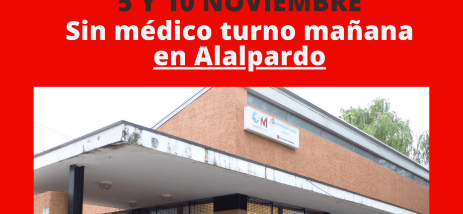 El Centro de Salud de Algete, del que dependen nuestros Consultorios Locales, confirma que el 5 y 10 de noviembre no habrá médico en turno de mañana en Alalpardo.