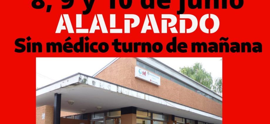 El Centro de Salud de Algete, del que dependen nuestros Consultorios, confirma que no habrá médico en Alalpardo en turno de mañana 8, 9 y 10 de junio.