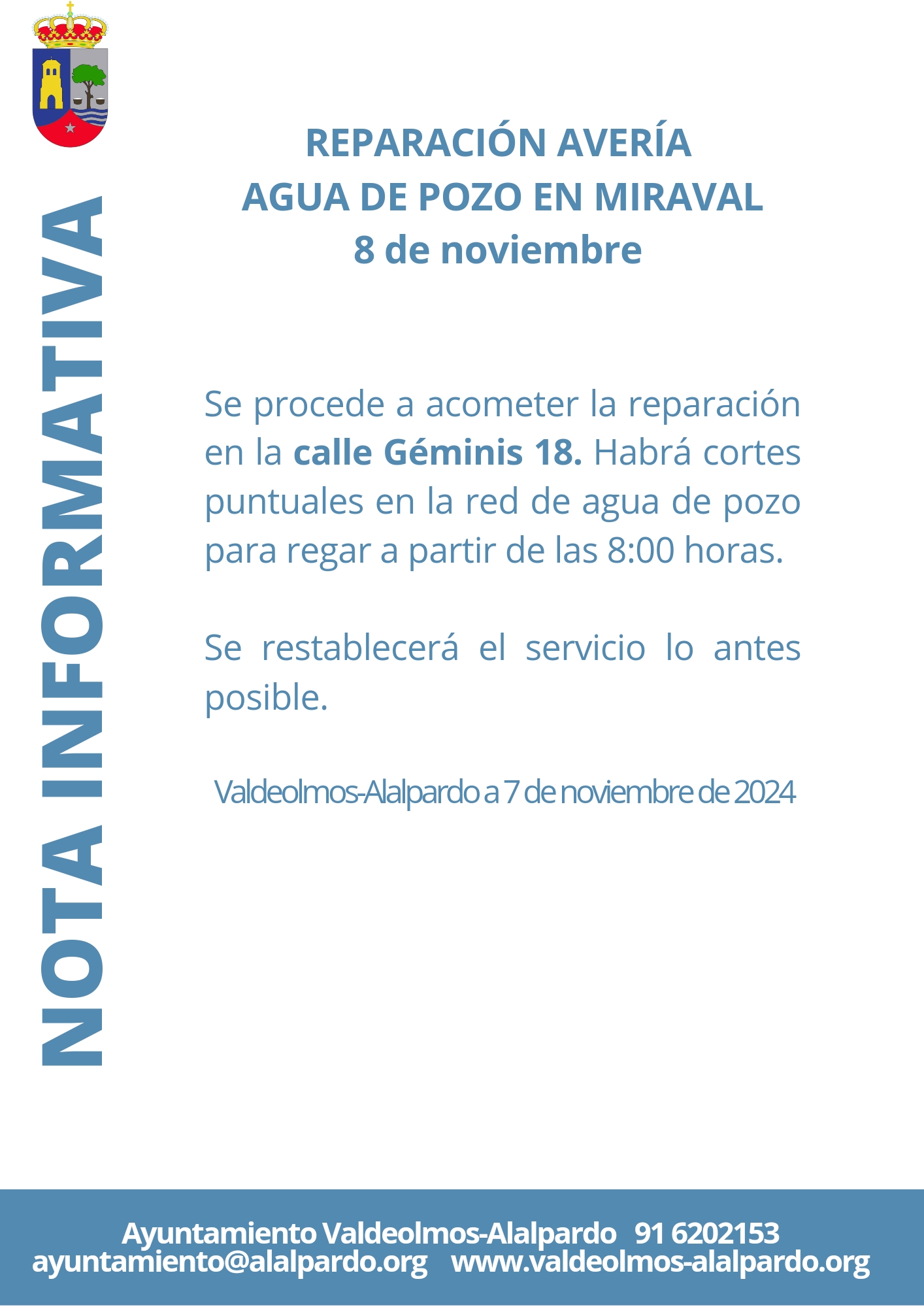 8 de noviembre: cortes de agua de pozo en Miraval » 8 de noviembre cortes de agua de pozo