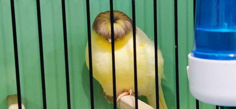 Mide 11 centímetros y no pesa más de 15 gramos. Es una de las variedades de canario más pequeñas que existen. Tienen forma redondeada , alas pequeñas, patas finas y lo más característico es su flequillo o moño. Debe llegar a la mitad del ojo pero sin taparlo. La cría de estos pájaros no es difícil pero es muy complicado conseguir canarios tan bonitos para participar en Exhibiciones de este tipo.