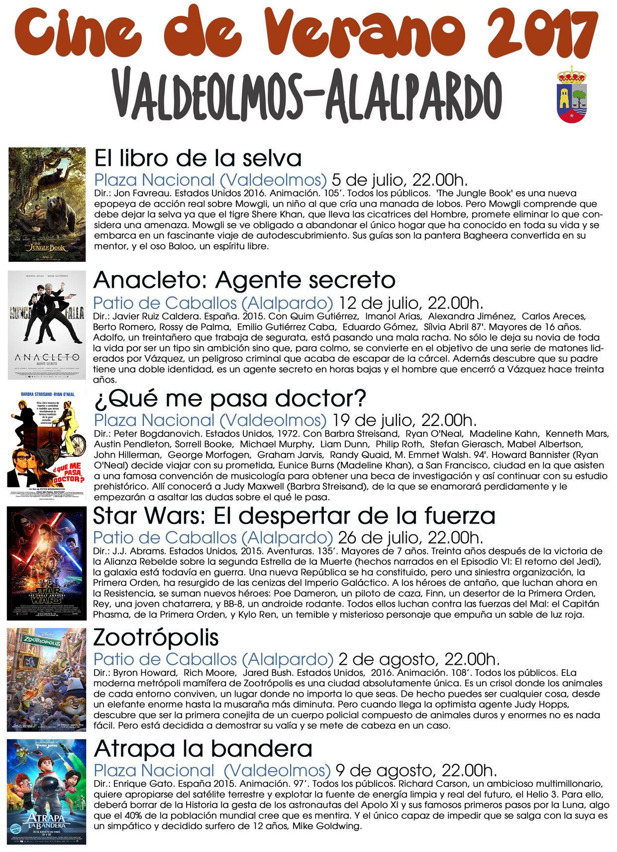 Consulta las 6 películas de este verano. 3 en Valdeolmos y 3 en Alalpardo.