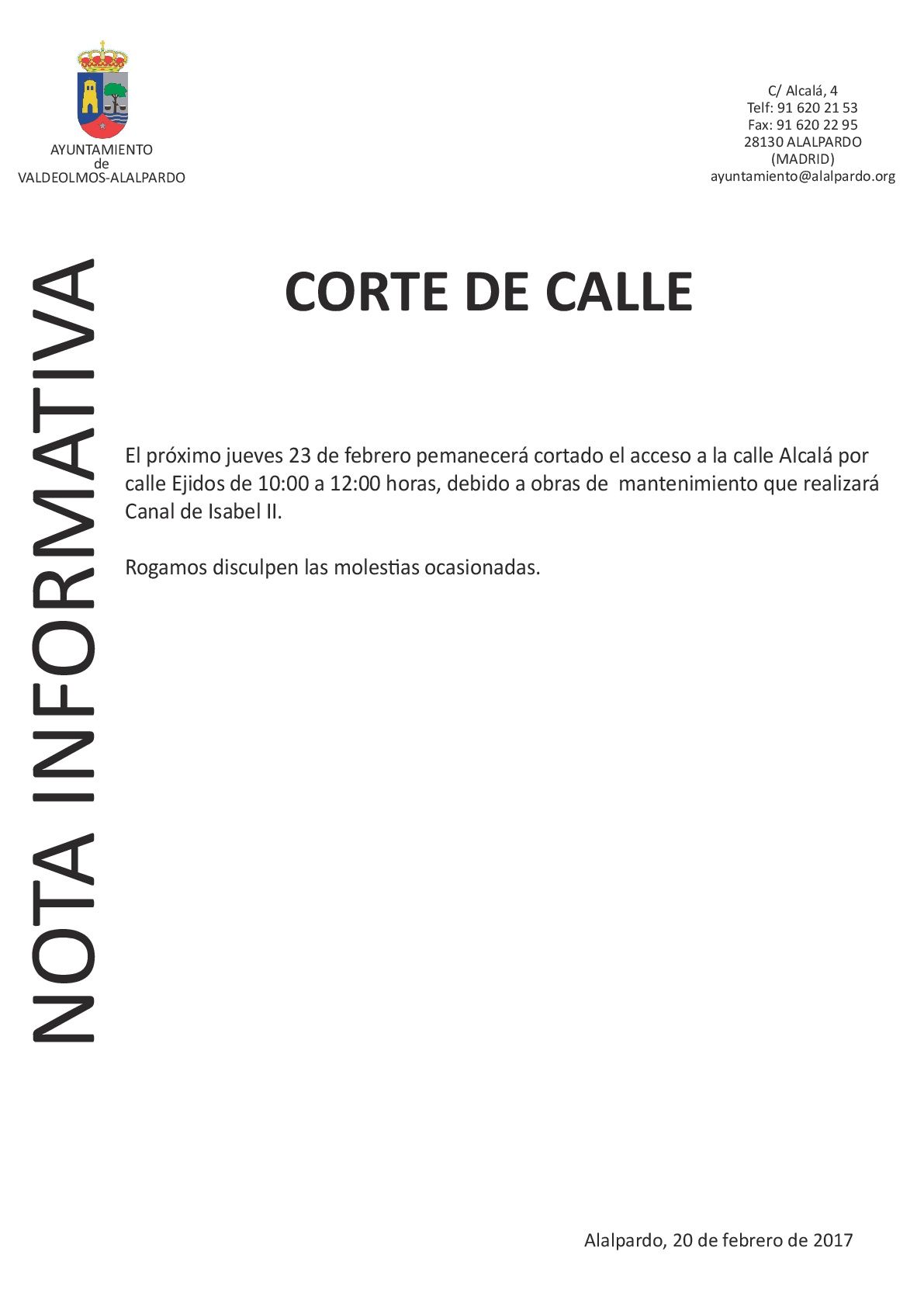 Acceso cortado por obras del Canal de Isabel II » Nota Informativa CORTE CALLE-001