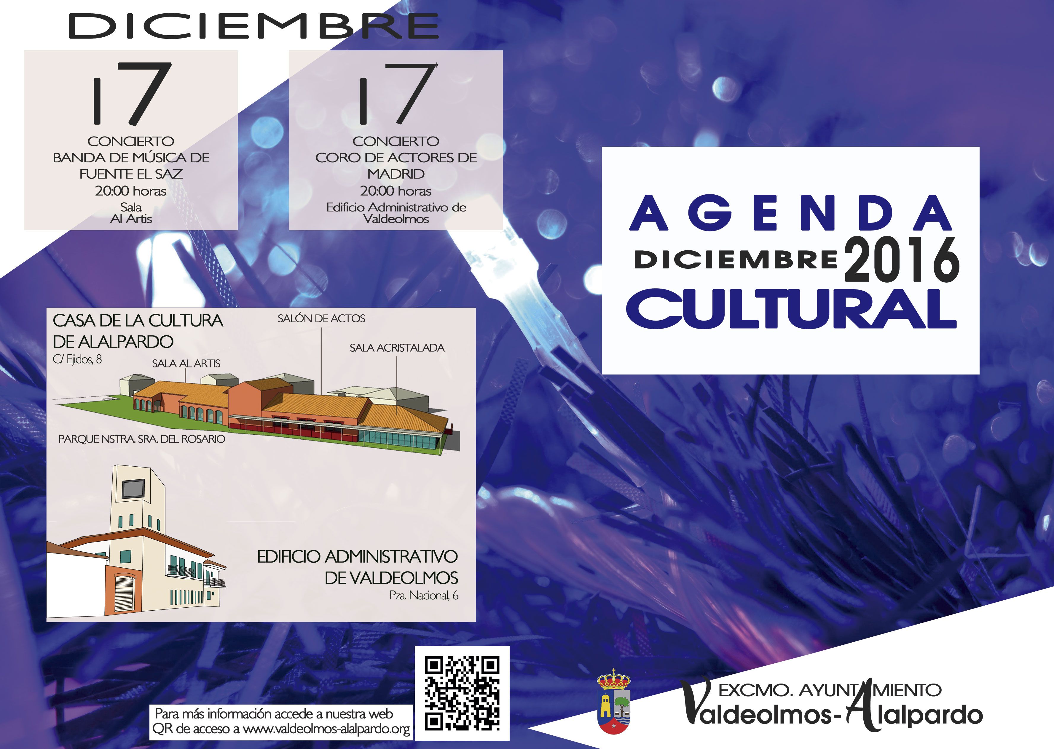 La Agenda Cultural del último mes del año está dedicada a la Navidad. Son dos eventos concentrados el mismo día. El sábado 17 de diciembre habrá dos conciertos navideños. El Coro de Actores de Madrid actuará en a las 20:00 horas en el Edificio Administrativo de Valdeolmos para acerca con su música la Navidad a los vecinos.