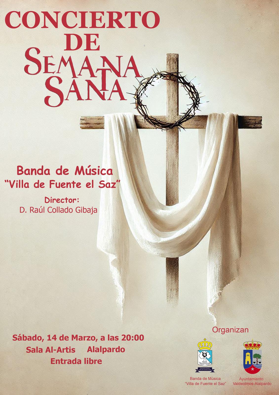 Sala Al Artis Calle Egidos, 8, Valdeolmos-Alalpardo, Madrid, EspañaGran concierto de Semana Santa a manos de la Banda de Música 'Villa de Fuente No te pierdas el Concierto con el Director de Orquesta, D. Raúl Collado Sábado 14 de marzo 20:00 horas Sala Al-Artis, Alalpardo Entada libre