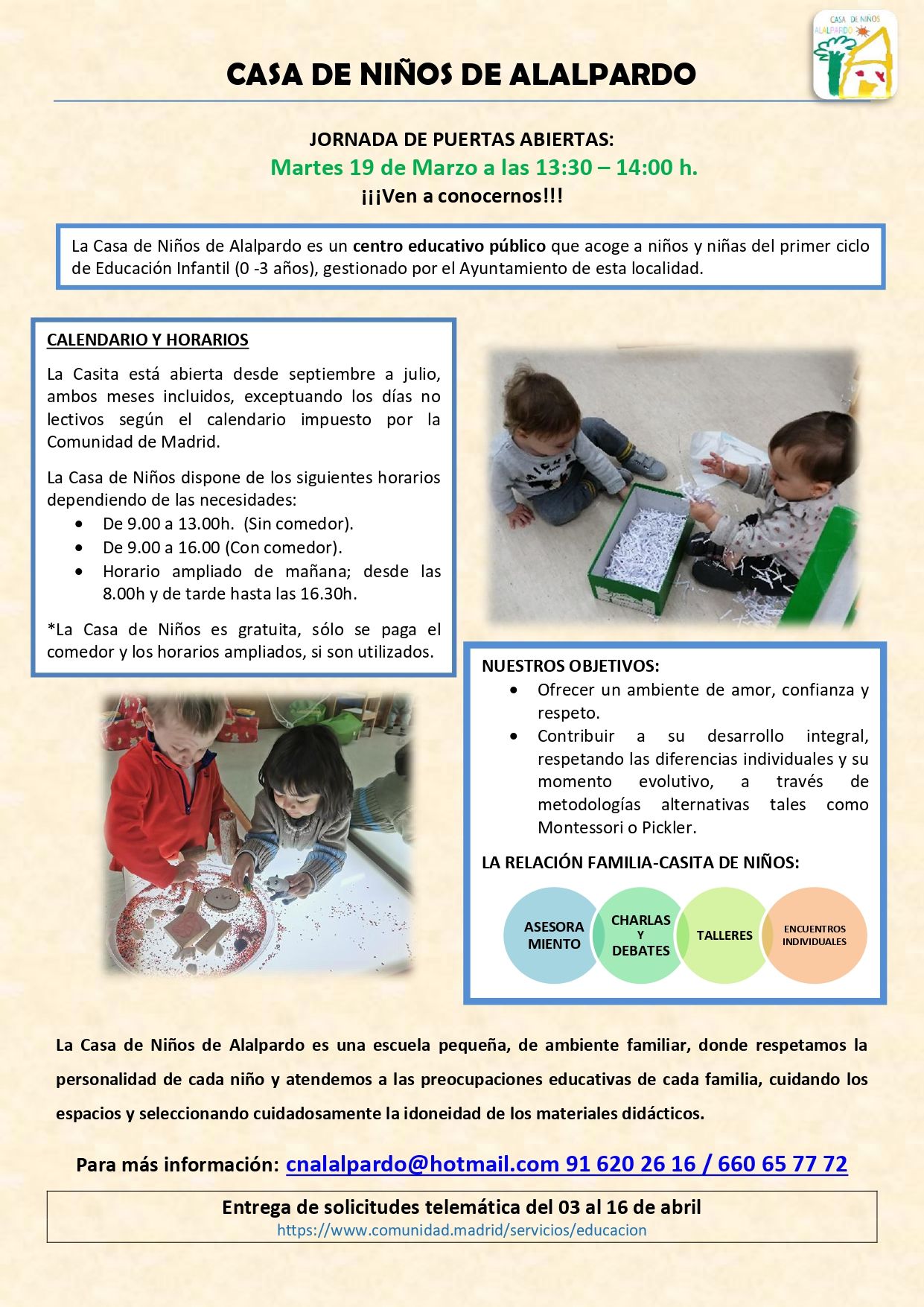 19 de marzo: Jornada de puertas abiertas en la Casa de Niños de Alalpardo