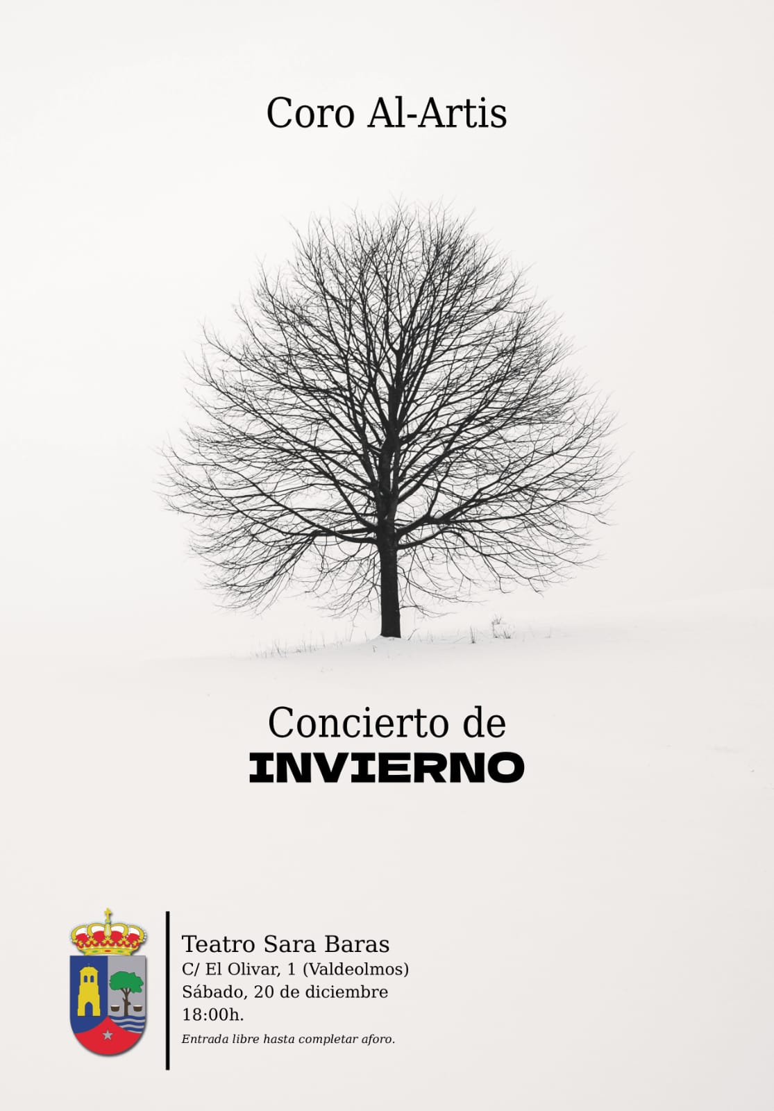 Teatro-Estudio Sara Baras C/ Olivar 1, ValdeolmosConcierto de invierno del Coro Al-Artis en el Teatro Sara Baras 20 diciembre Teatro Sara Baras, C/ El Olivar 1, Valdeolmos 18:00 horas Gratis Aforo 80 butacas Entradas libre hasta completar aforo
