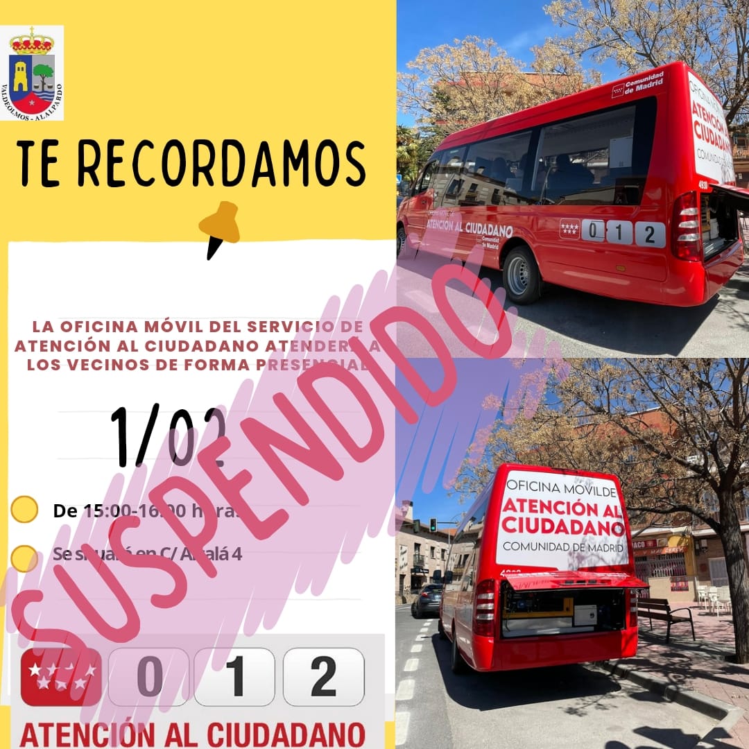 Por causas ajenas a la Comunidad de Madrid, la Oficina Móvil de Atención al Ciudadano no podrá prestar el servicio habitual.