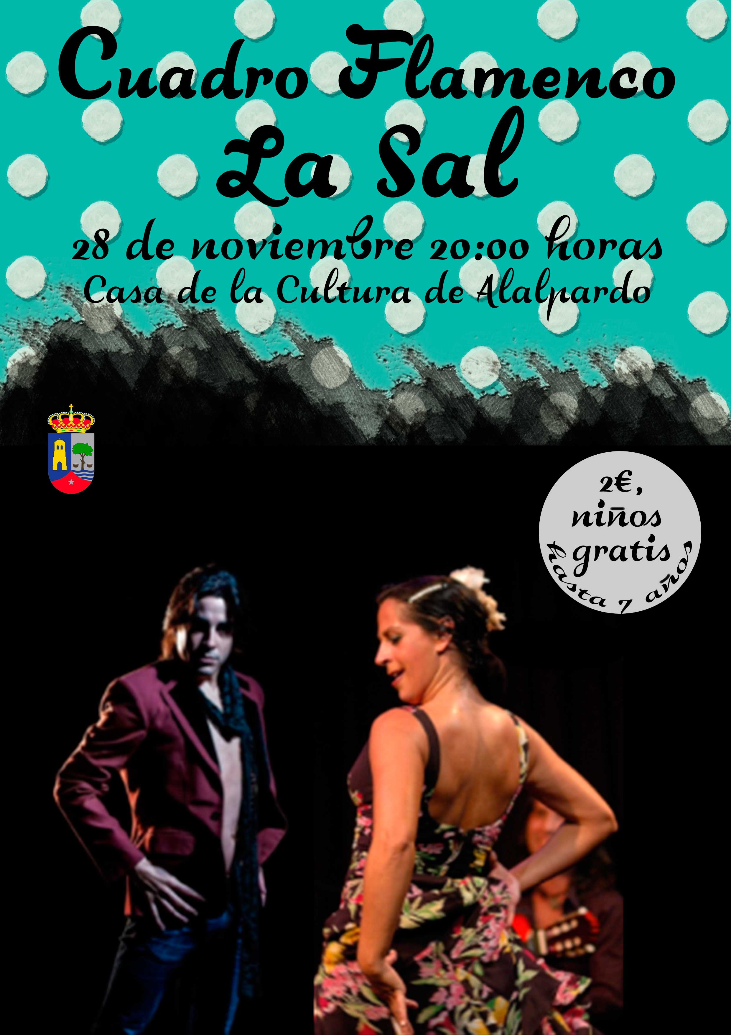 Casa de Cultura de Alalpardo C/ Ejidos, 8, Alalpardo, Madrid, EspañaAlegrías, fandangos, soleás, bulerías.... Una tarde flamenca con 'La Sal'. 28 de noviembre 20:00 horas Casa de la Cultura de Alalpardo