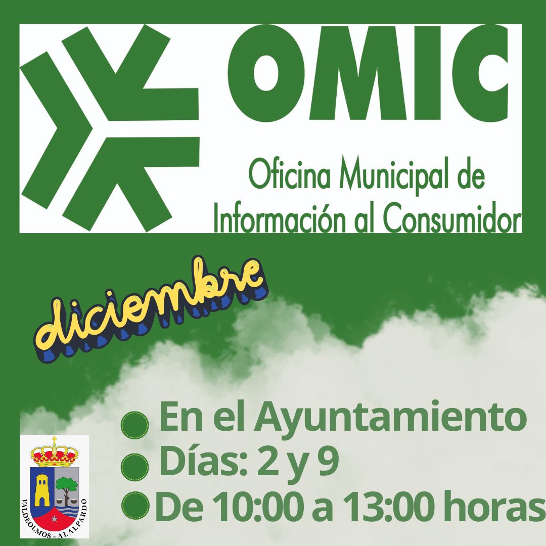 Calle Alcalá 4 Calle Alcalá 4, Valdeolmos-Alalpardo, MadridOMIC (Oficina Municipal de Información al Consumidor) Puede ayudarte con: Tramitación de reclamaciones y denuncias Arbitrajes de consumo Consultas generales sobre derechos y deberes como consumidor Asesoramiento especializado en materia de consumo. En el Ayuntamiento Diciembre: 2 y 9 De 10:00 a 13:00 horas