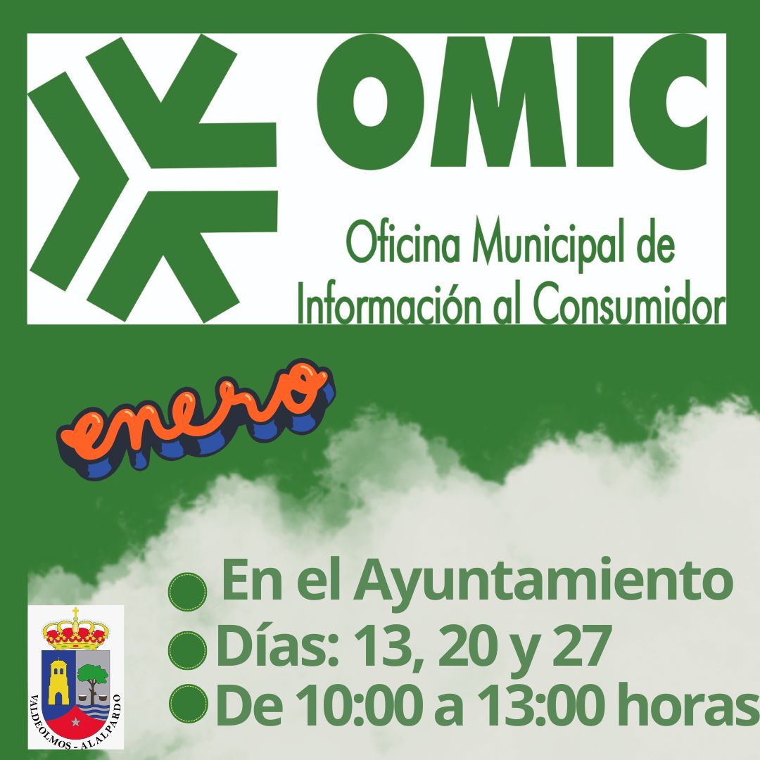 Calle Alcalá 4 Calle Alcalá 4, Valdeolmos-Alalpardo, MadridOMIC (Oficina Municipal de Información al Consumidor) Puede ayudarte con: Tramitación de reclamaciones y denuncias Arbitrajes de consumo Consultas generales sobre derechos y deberes como consumidor Asesoramiento especializado en materia de consumo. En el Ayuntamiento Enero: 13, 20 y 27 De 10:00 a 13:00 horas