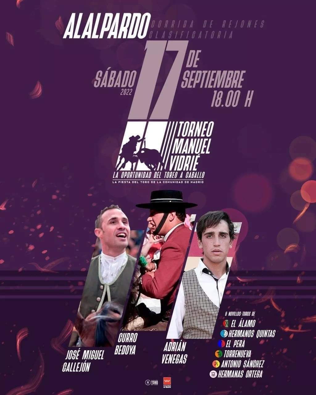 17 de septiembre: Toreo a caballo ‘Torneo Manuel Vidrié’ en la Plaza de Toros de Alalpardo