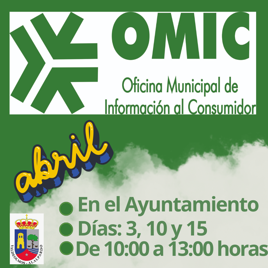 OMIC (Oficina Municipal de Información al Consumidor) Puede ayudarte con: Tramitación de reclamaciones y denuncias Arbitrajes de consumo Consultas generales sobre derechos y deberes como consumidor Asesoramiento especializado en materia de consumo En el Ayuntamiento Abril: 3, 10 y 15 De 10:00 a 13:00 horas