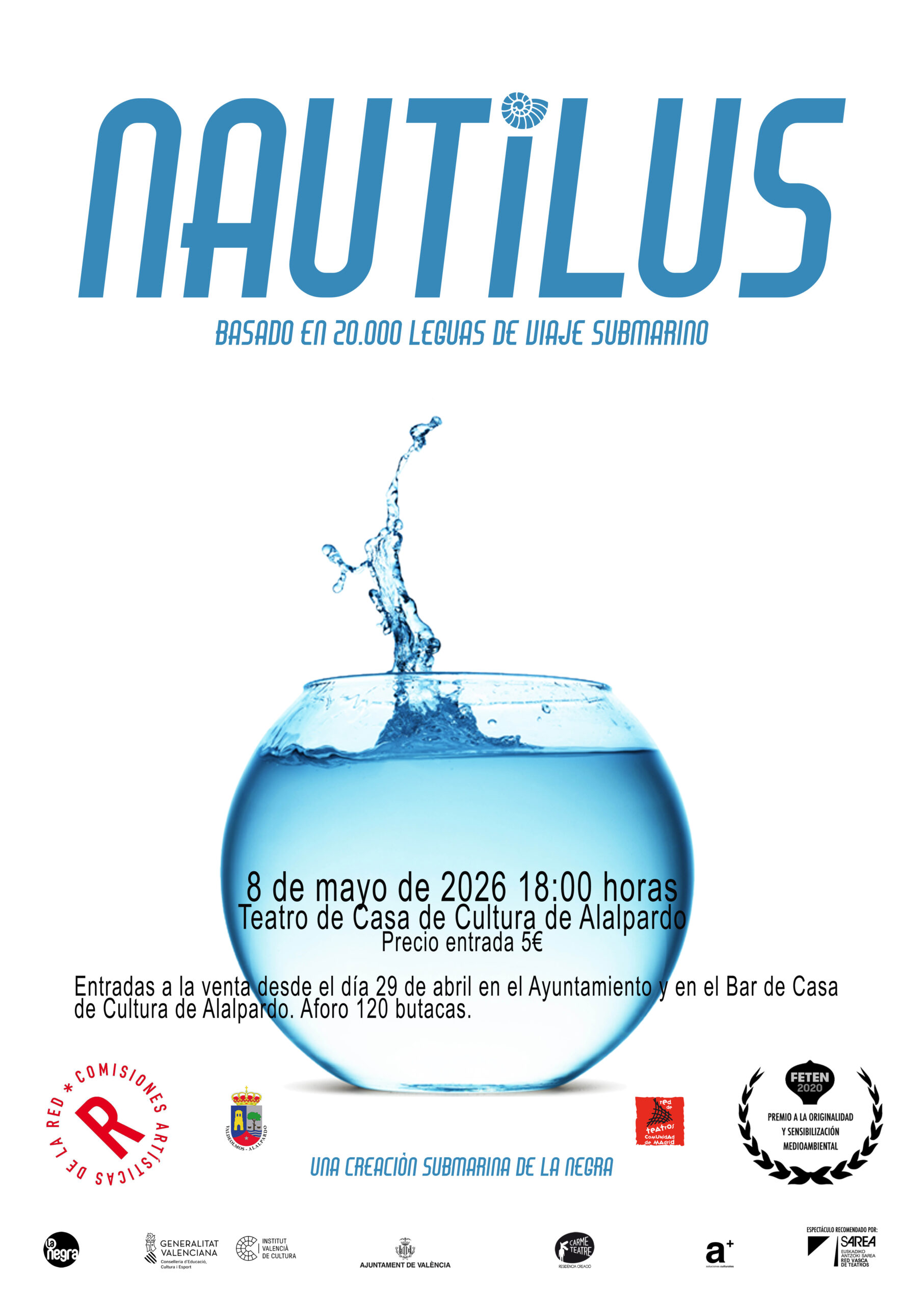 Teatro Casa de la Cultura de Alalpardo C/ Carlos Martín Alvárez 6, Valdeolmos-Alalpardo, MadridNautilus. 20.000 leguas de viaje submarino Desde hace un tiempo, el capitán Nemo viene observando que los bancos de coral se han convertido en montañas de basura, los peces en bolsas de plástico, y las praderas de posidonia en vertederos acuáticos. La vida marina está en peligro y Nemo se