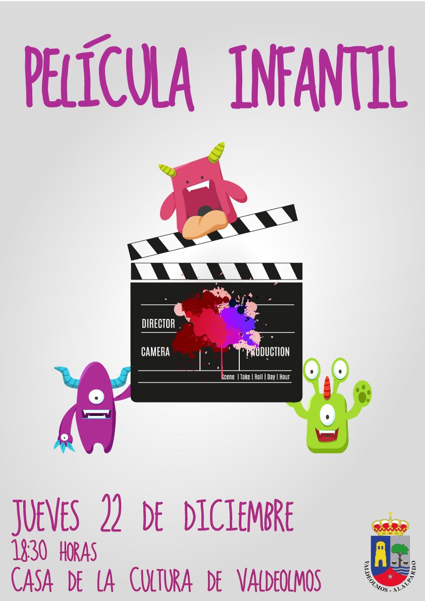 Cine para las primeras horas sin colegio. 22 de diciembre 18:30 horas Casa Cultura Valdeolmos