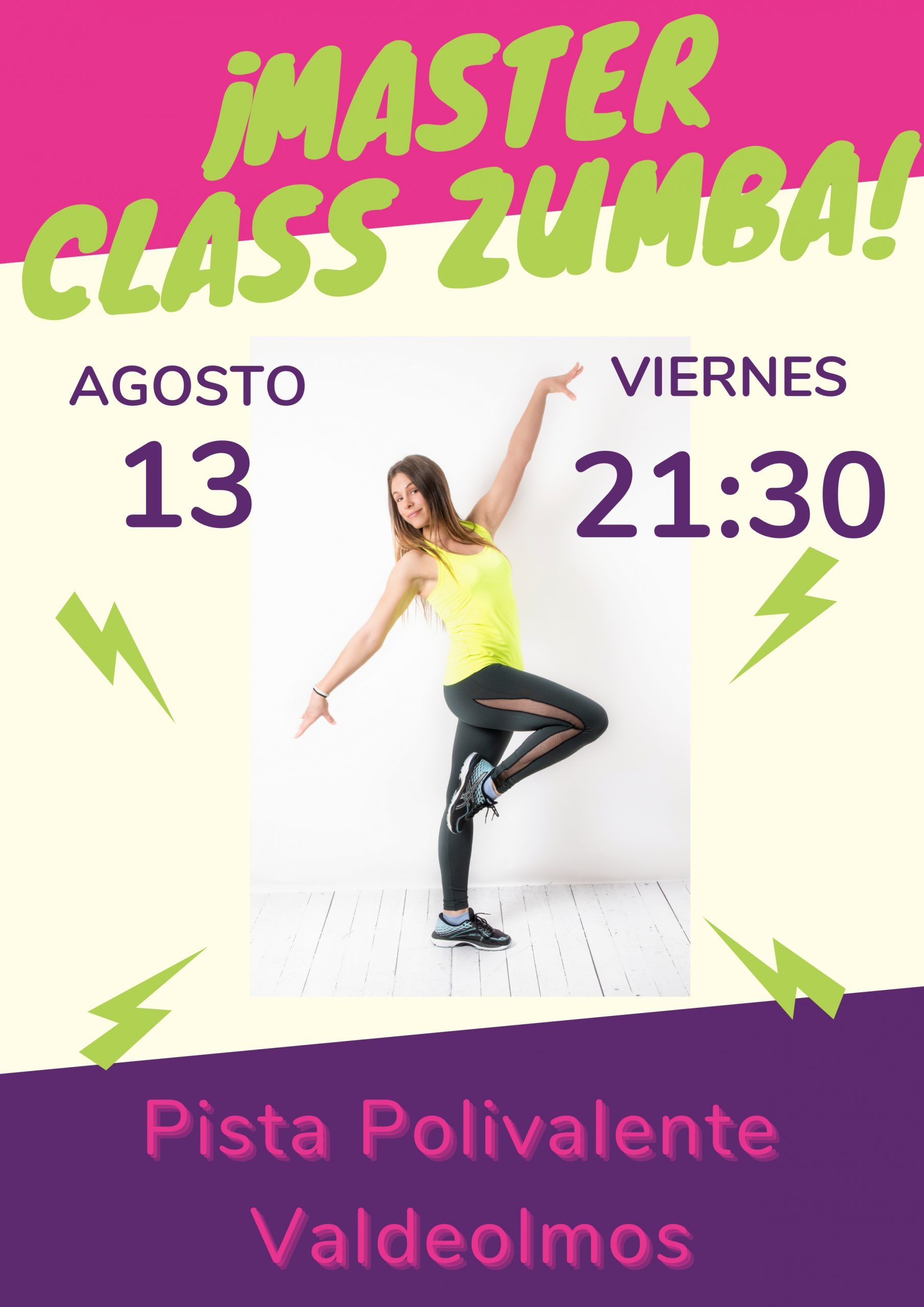Te esperamos en la Máster Class de Zumba en la Pista Polivalente en Valdeolmos el 13 de agosto a las 21:30 horas.