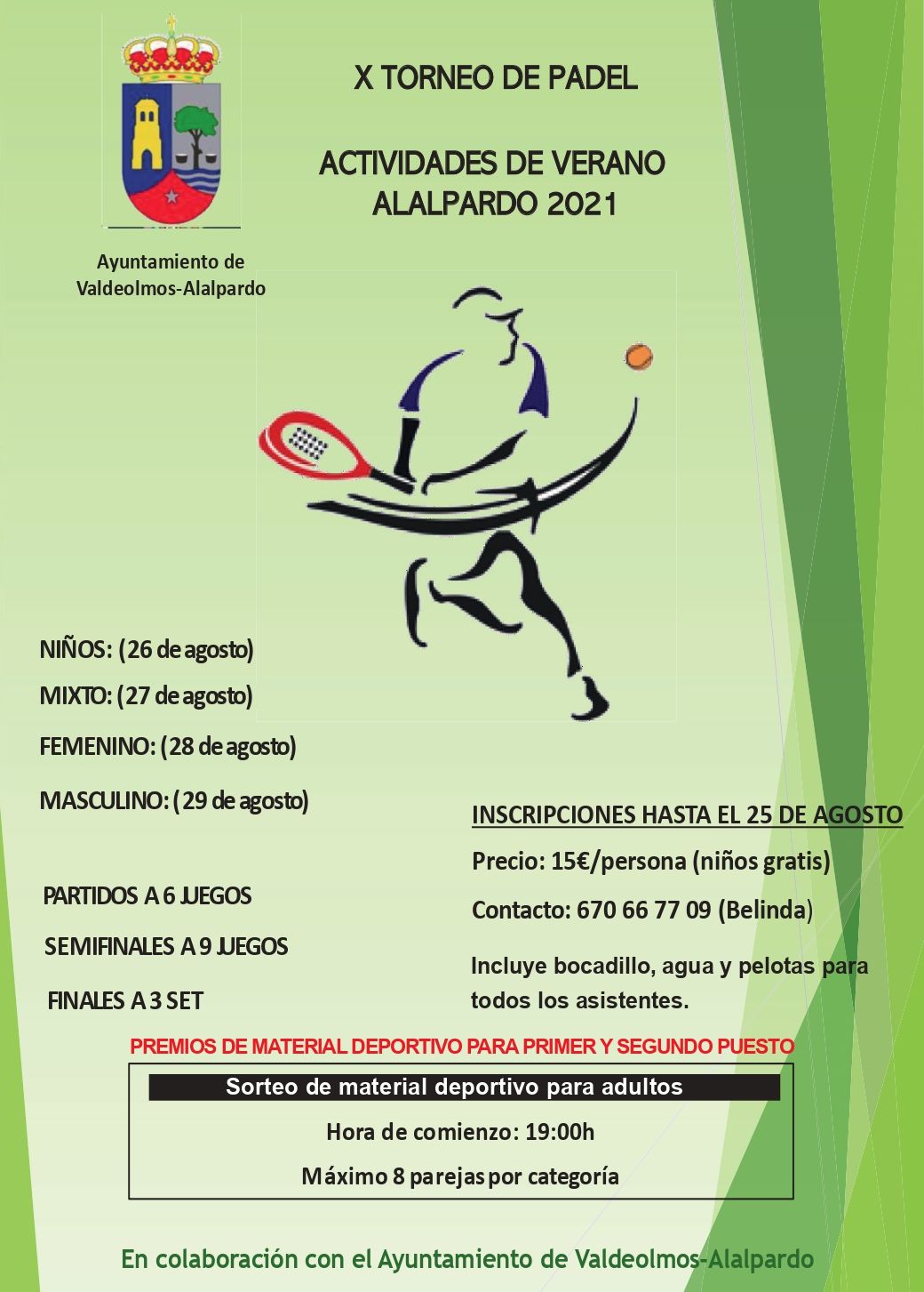 Contacta con Belinda para apuntarte: 670 66 77 09 Material deportivo para primer y segundo puesto