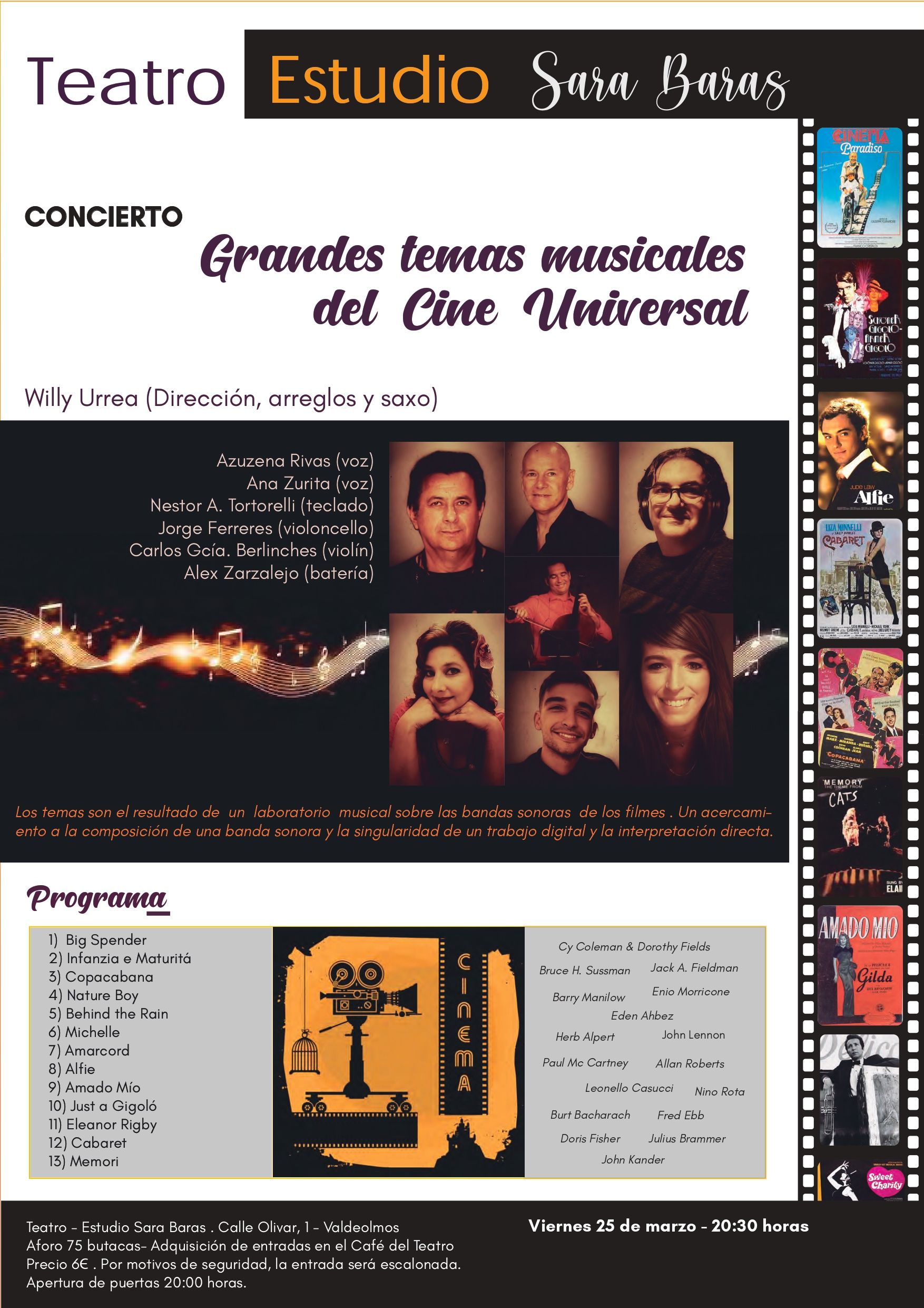 25 de marzo: Concierto de ‘Grandes temas musicales del Cine Universal’ en el Teatro Estudio Sara Baras
