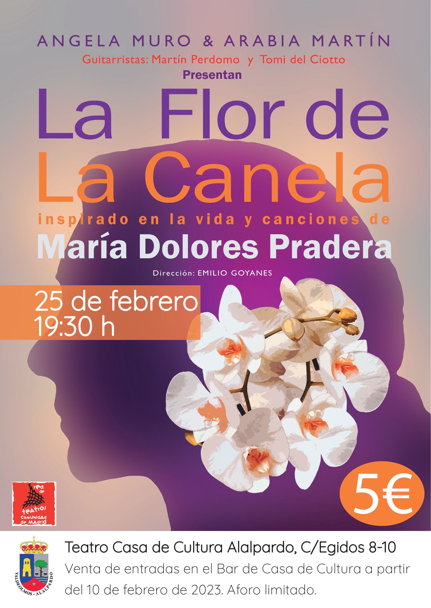 Precio 5€. Venta de entradas en el Bar de la Casa de la Cultura a partir del 10 de febrero. Aforo limitado. 'La flor de la canela' es un espectáculo inspirado en la vida y canciones de María Dolores Pradera