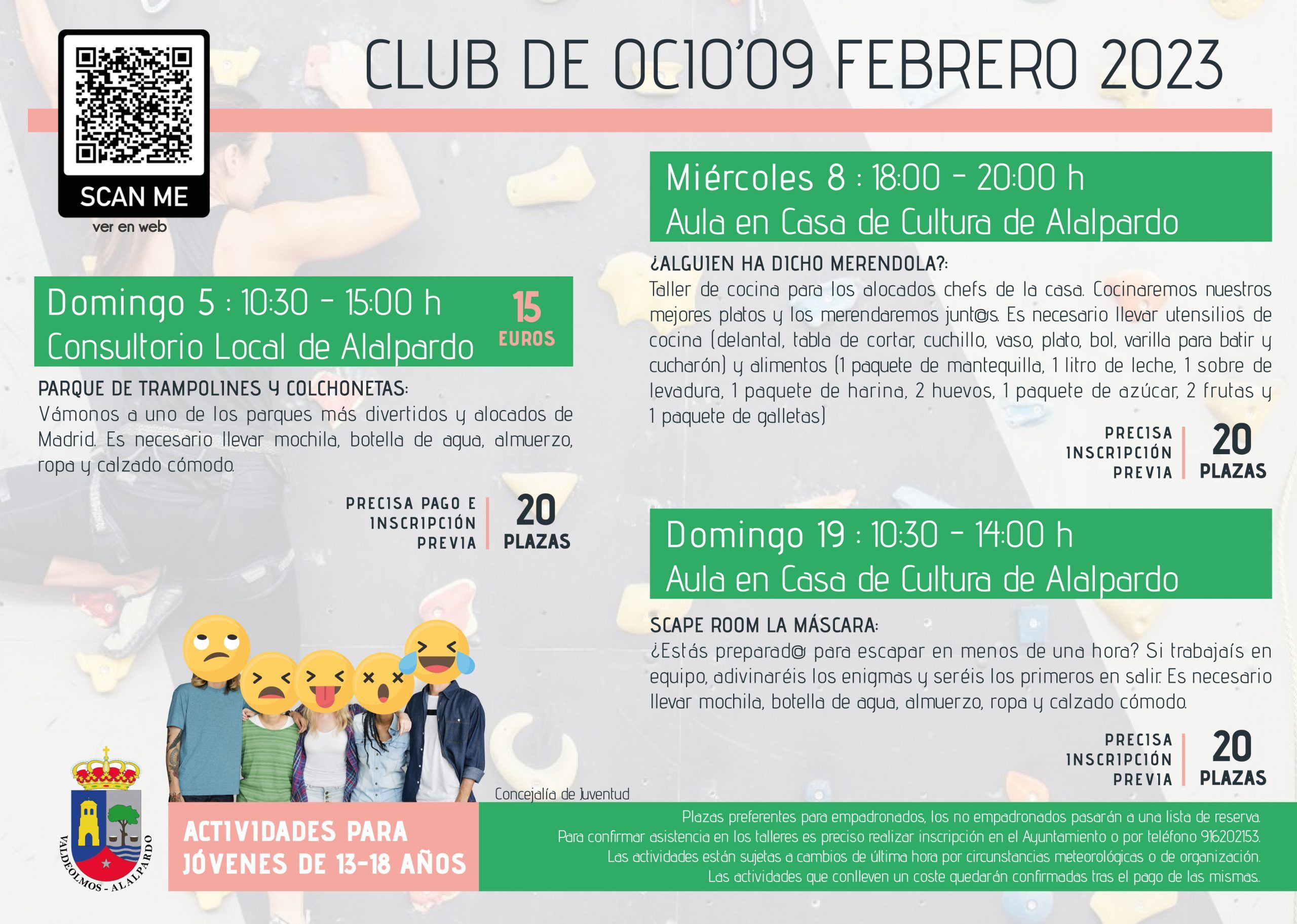 Actividades para jóvenes de 13 a 18 años los días 5, 8 y 19 de febrero