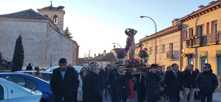 Los vecinos de Alalpardo sacaron el procesión a San Sebastián en una fría tarde. Pero el frío y el viento no pudieron con las ganas de recorrer las calles procesionando a San Sebastián, el llamado Apolo cristiano a quien, según la historia, obligaron a elegir entre su condición militar y su fe.