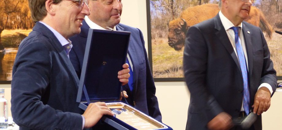 Con otro caluroso aplauso recibió el público de la Sala Al-Artis de Alalpardo a José Luis Martínez Almeida, Alcalde de Madrid, donde recibió el Premio de mano de su homólogo Miguel Ángel Medranda.
