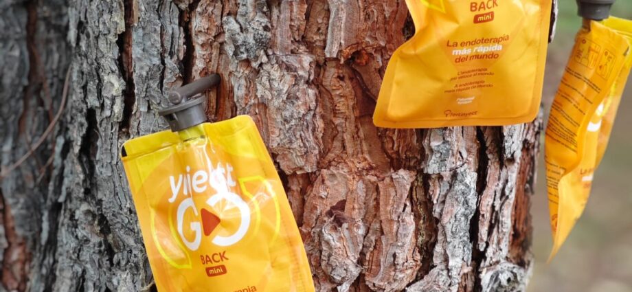 Consiste en inyectar el producto fitosanitario en el sistema vascular del árbol que absorbe en una hora y media.
