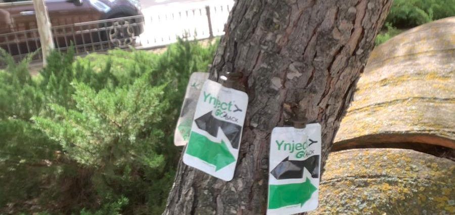 Consiste en inyectar el producto fitosanitario en el sistema vascular del árbol que absorbe en una hora y media.