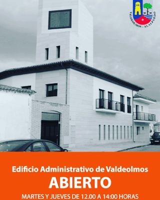Desde hoy día 19 de septiembre permanecerá abierto el Edificio Administrativo de Valdeolmos. El horario de atención al público será de 12:00 a 14:00 horas.