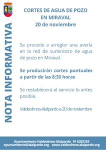 20 de noviembre: Cortes de agua de pozo en Miraval