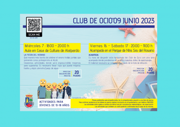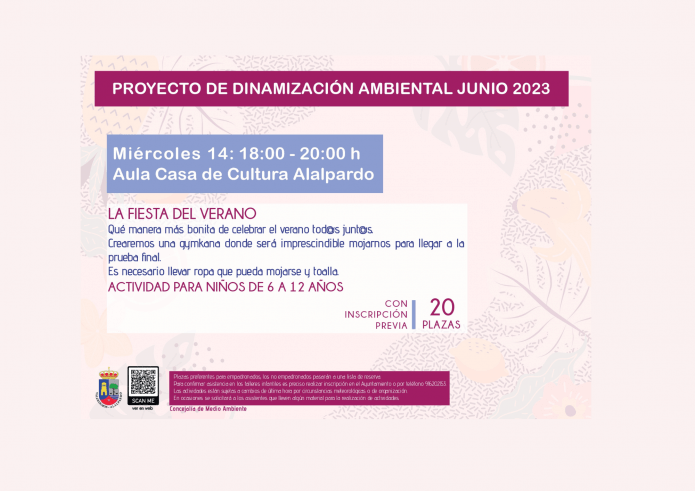 • Miércoles 14 de junio: La Fiesta del Verano en el Aula de la Casa de la Cultura de Alalpardo. Actividad para niñ@s de 6 a 12 años.