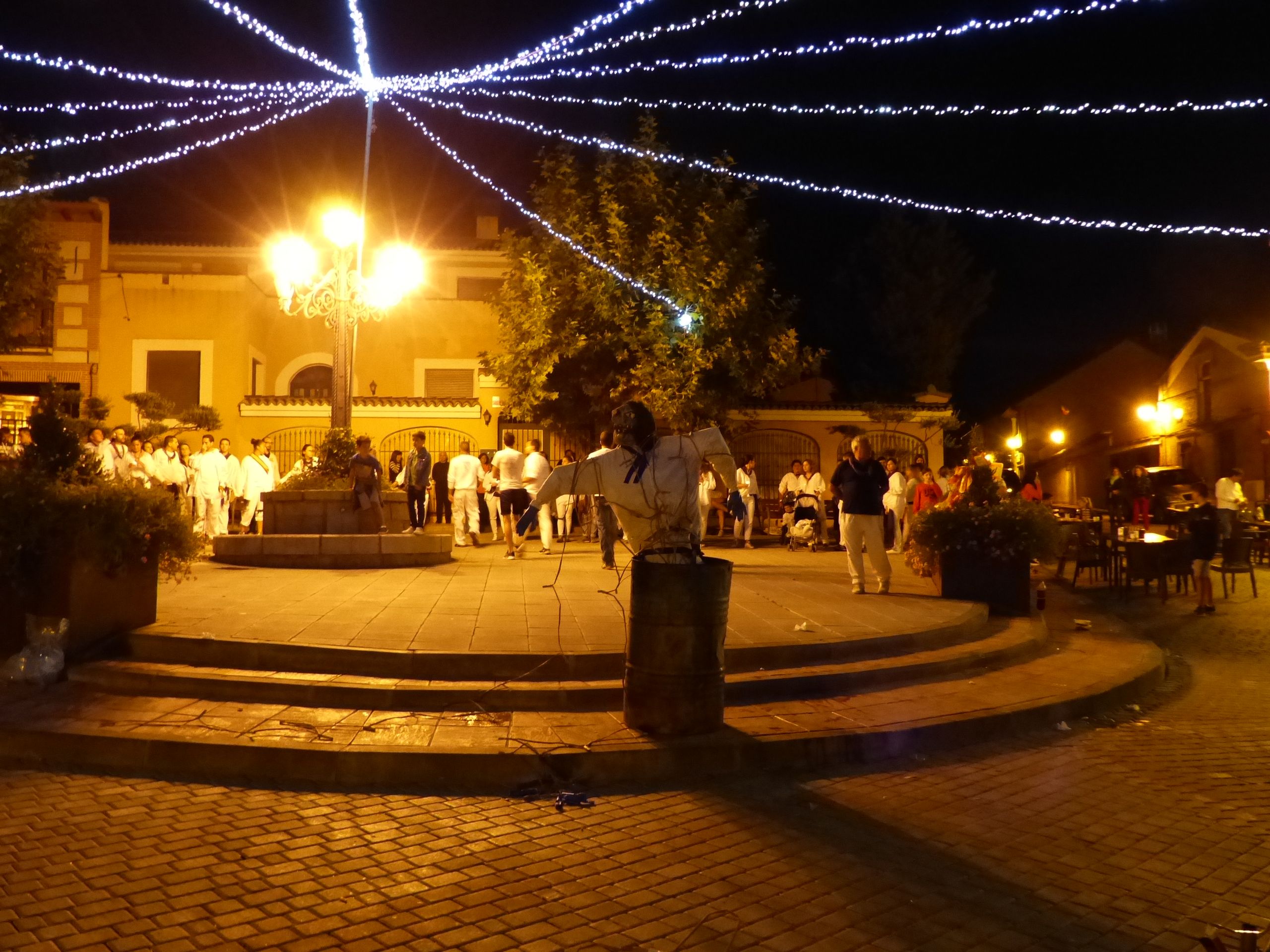 Después de la procesión vela en mano, pancarta y Mozo, tocó despedirse de las Fiestas. Los miembros de la Peña El Coñazo se dieron la mano formando un gran círculo alrededor de la Plaza. Cantaron apenados. Después toco quemar al Mozo.