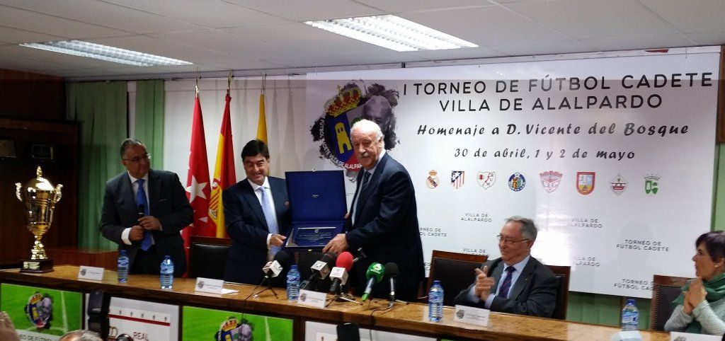 Vicente del Bosque, seleccionador nacional de fútbol desde hace 8 años, presentó el I Torneo Cadete de Alalpardo en la Federación Madrileña de Fútbol. El alcalde del municipio, Miguel Ángel Medranda, agradeció el esfuerzo para que este Torneo se pueda disputar en Alalpardo el 30 de abril, 1 y 2 de mayo. Jugarán 8 equipos categoría Sub-16. Se verá fútbol base al más alto nivel. Precisamente, el seleccionador que llevó a España a ser Campeona del Mundo, sabe lo importante que es el fútbol juvenil.