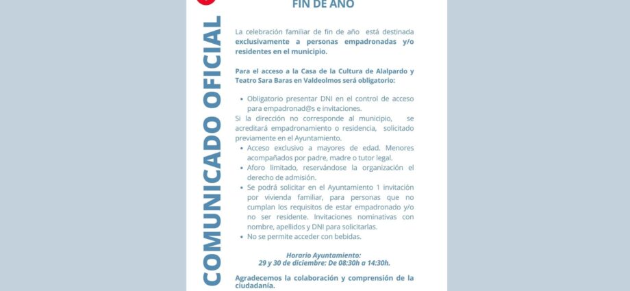Es importante conocer los requisitos para acceder a la Casa de la Cultura de Alalpardo y al Teatro Sara Baras, lugares donde tendrán lugar las celebraciones para dar la bienvenida al 2026