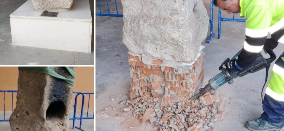 - Segundo y siempre con muchísimo cuidado, el equipo de Mantenimiento separó el Altar romano del bloque de ladrillos.