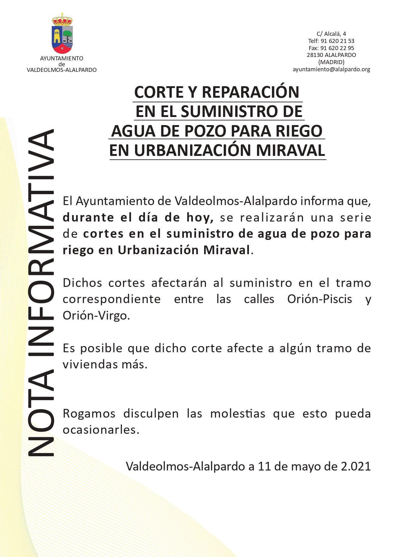 Corte y reparación en el suministro de agua de pozo para riego en Miraval » Nota Informativa – CORTE Y REPARACIÓN CALLE ORIÓN_page-0001