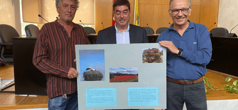 Sus autores, vecinos del municipio, Mauricio Torres y Guillermo Vaquero entregan el 23 de junio uno de los montajes al Alcalde, Miguel Ángel Medranda.
